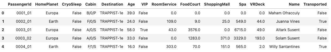 2023.03.28 - [IT/Data 분석] - [우주선 생존] 분석 4회차 [우주선 생존] 분석 4회차 2023.03.26 - [IT/Data 분석] - [우주선 생존] 분석 3회차 [우주선 생존] 분석 3회차 2023.03.25 - [IT/Data 분석] - [우주선 생존] 분석 2회차 [우주선 생존] 분석 2회차 2023.03.23 - [IT/Data 분석] - [우주선 생존] 분 songsiaix.tistory.com 앞선 회차에서 결측치를 중앙값과 평균값으로 변경하였을 때 특별한 상관관계를 못찾았다. 이번에는 결측치를 갖고 있는 모든 행을 삭제하고 난 이후 한번더 도전해보았다. df4 = df.copy() df4.dropna(inplace=True) df4.info() Int64Index: 6..